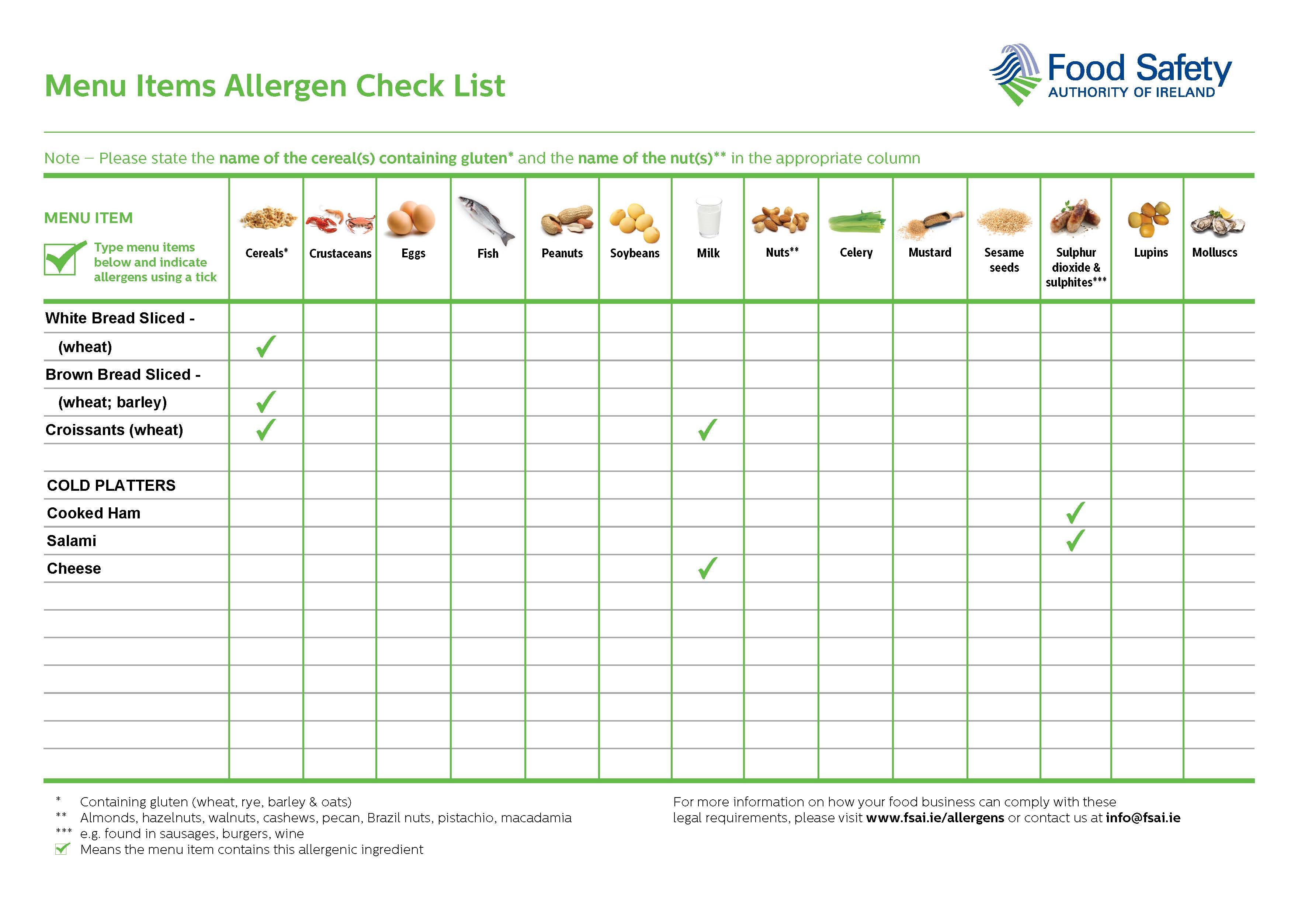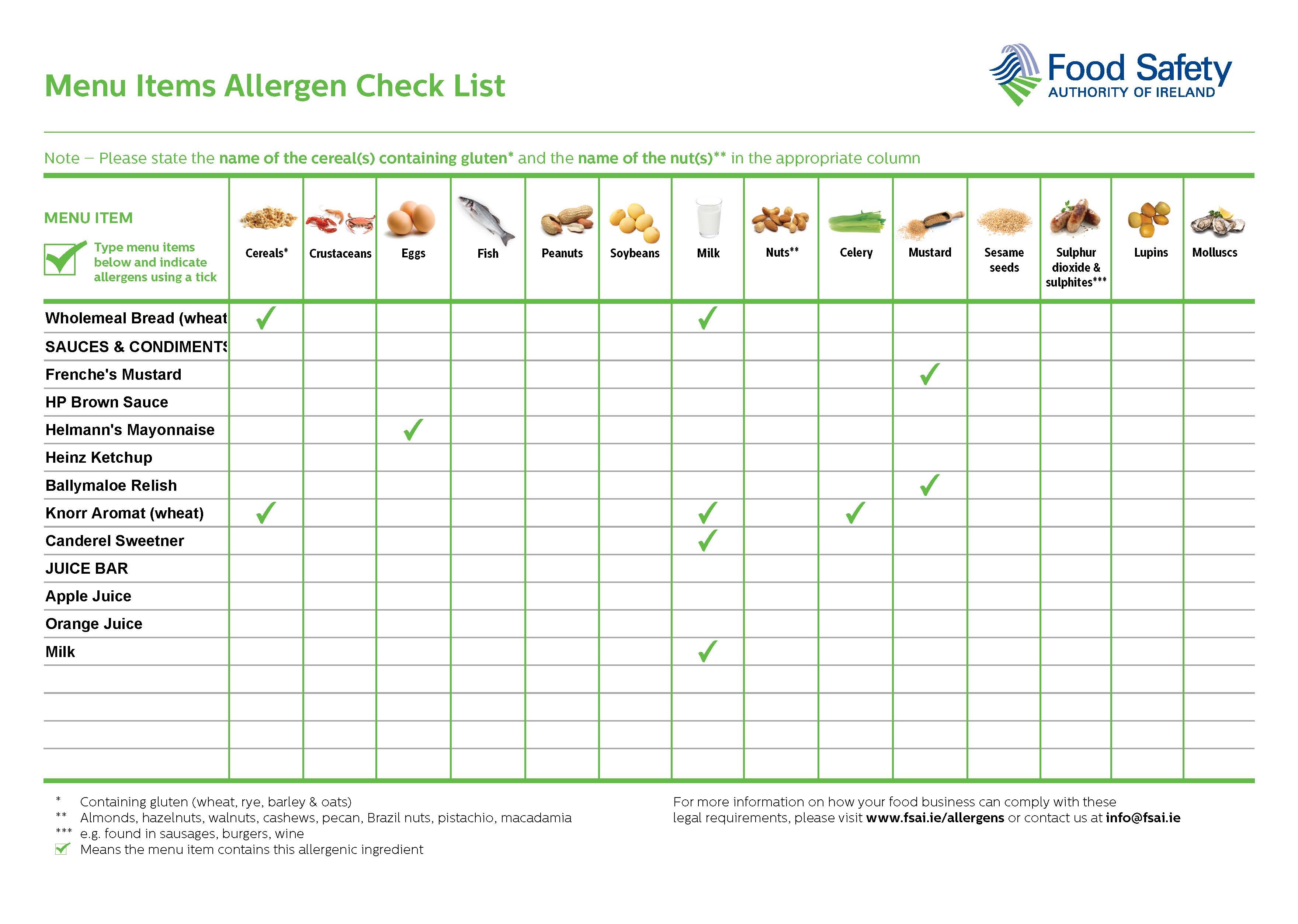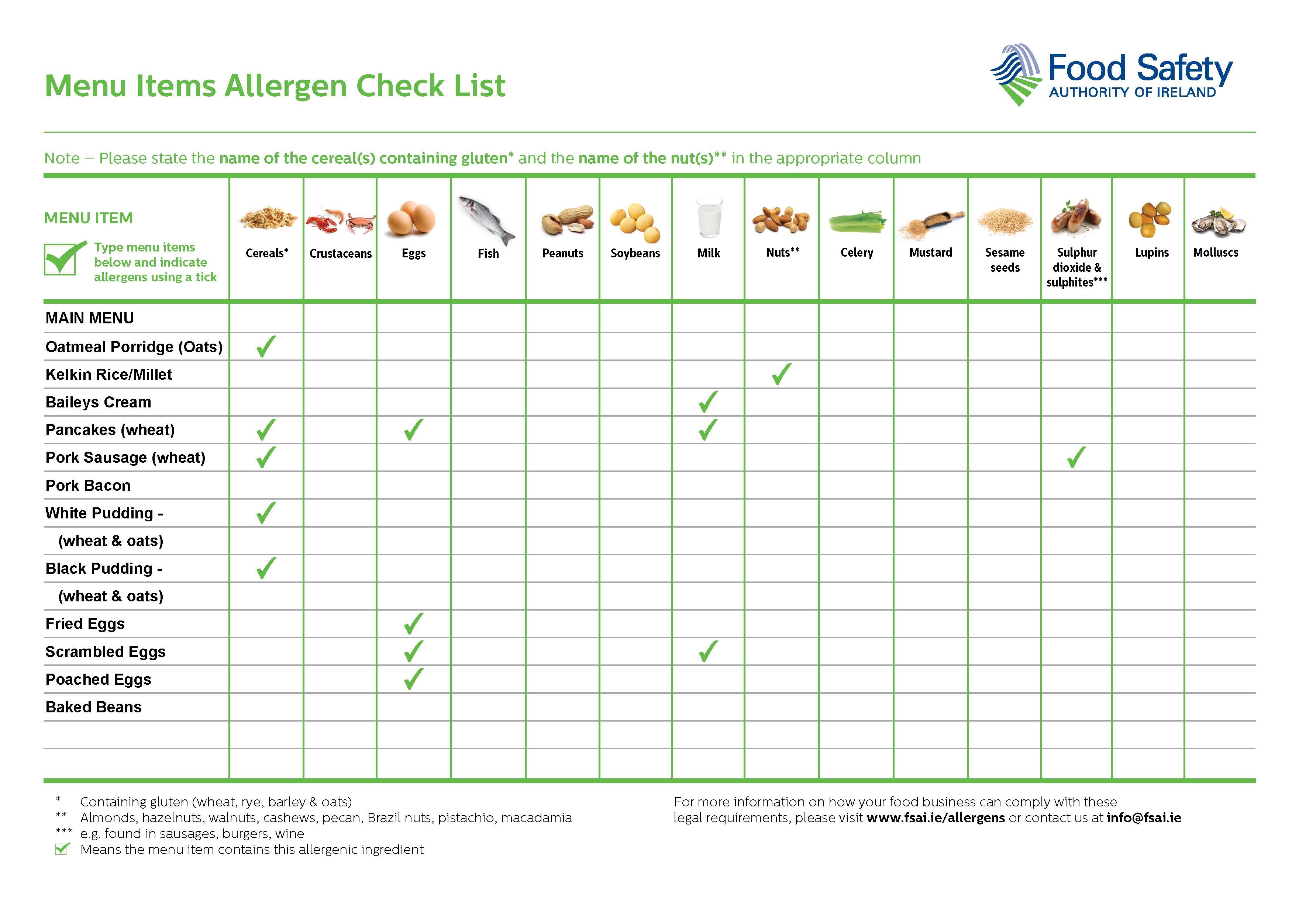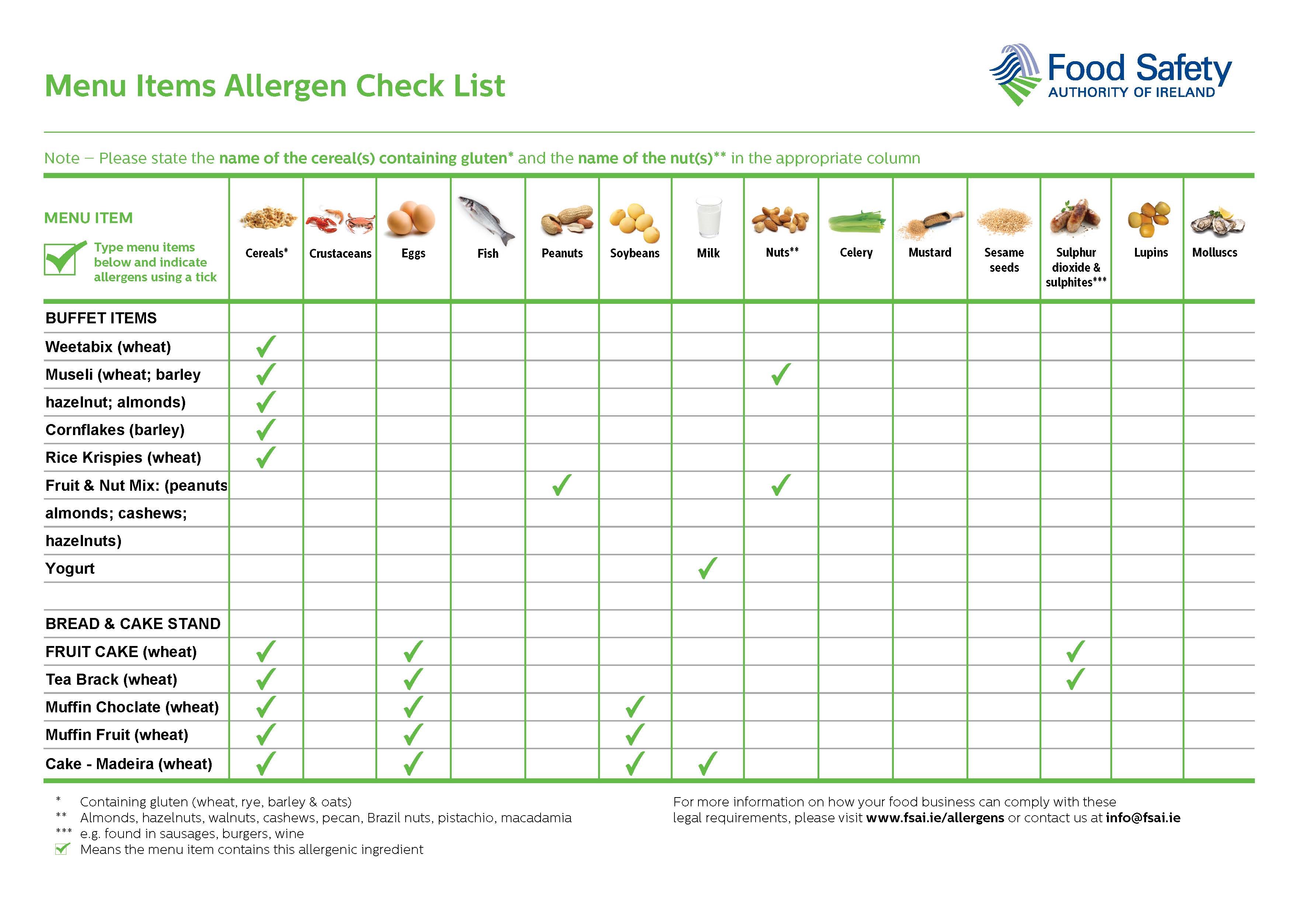 Below you will see a list of allergens contained in the foods we have available at breakfast. Please let us know if you have any special requirements and we will do our best to facilitate you.